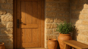 Двери из массива — это не просто элемент интерьера, а часть общей экосистемы дома. Они гармонично сочетаются с другими экологичными решениями, такими как солнечные панели, системы сбора дождевой воды или стены из глины и соломы. Например, деревянные двери можно комбинировать с полами из натурального камня или пробки, чтобы усилить ощущение природной гармонии.
