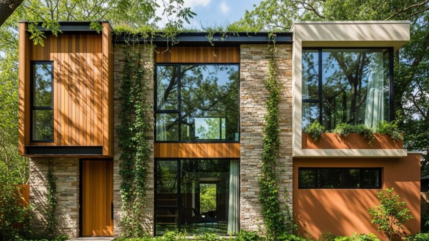 Экологичные материалы, такие как минеральные штукатурки, древесина с хорошей защитой, фиброцементные панели, обладают высокой износостойкостью и устойчивостью к погодным условиям. Это способствует сохранению внешнего вида фасада на долгие годы.